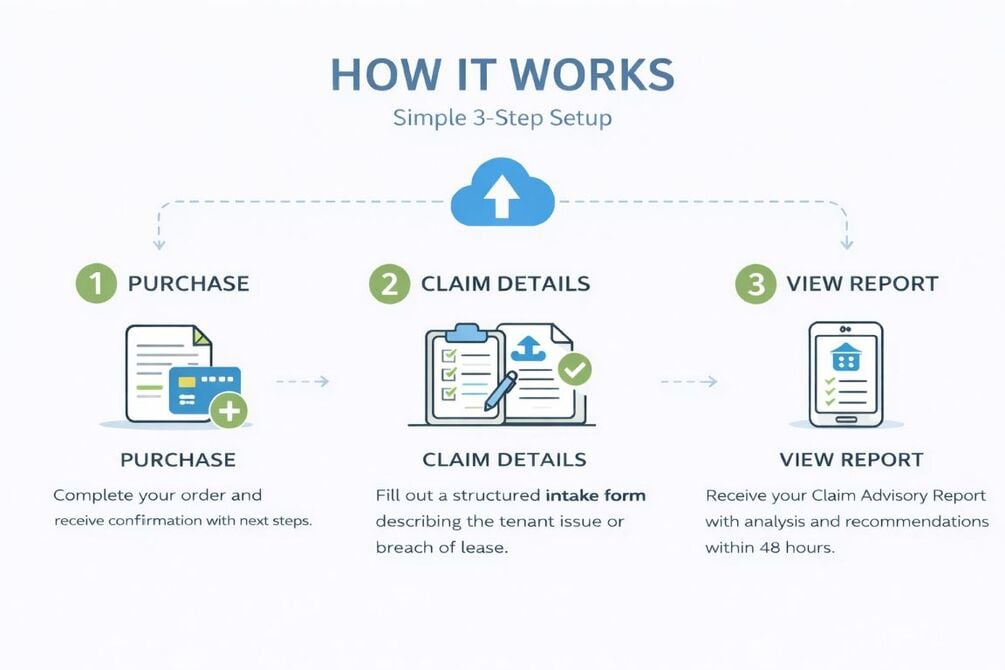 The Claim Advisory Report gives landlords a structured, professional assessment of the situation—so you can evaluate your options, manage risk, and act with confidence.