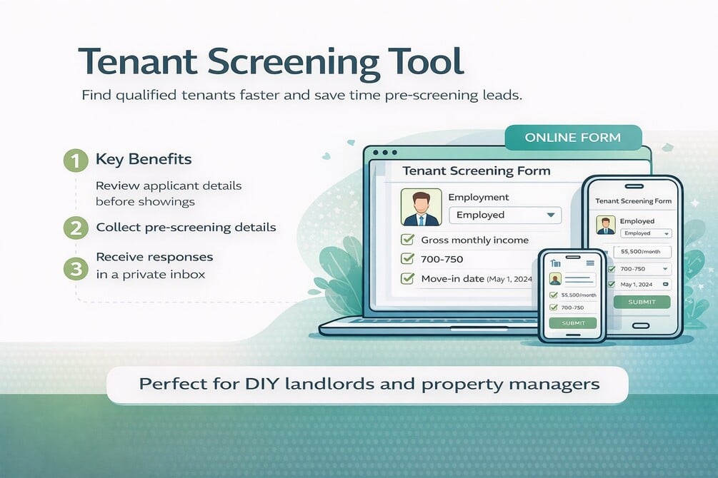 Pre-screen rental applicants before scheduling showings. Get a professional tenant screening form that collects employment, income, credit details, and household details. Mobile-friendly and privacy-compliant.
